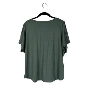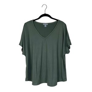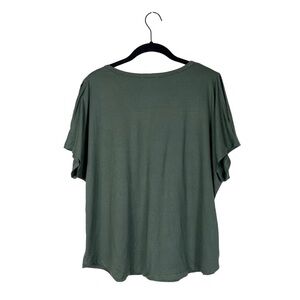Eddie Bauer Women's Olive Green V-Neck Short Sleeve Cold Shoulder Casual Top
