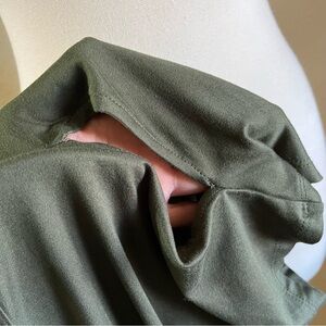 Eddie Bauer Women's Olive Green V-Neck Short Sleeve Cold Shoulder Casual Top M