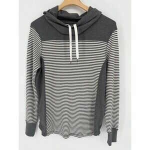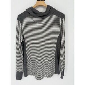 Eddie Bauer Women's Outdoor Gray & White Striped Cowl Neck W/ Drawstring Top XL