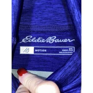 The Eddie Bauer Women's Performance Motion Cowl Neck Top in XS is a versatile activewear piece designed for comfort and performance. This pullover sweatshirt features a cowl neck neckline, raglan sleeves, and an athletic fit, making it suitable for a variety of activities such as cycling, golf, and running. The purple color adds a stylish touch, while the easy-care fabric is machine washable and wrinkle-resistant. Perfect for all seasons, this breathable top is a must-have for any active woman's wardrobe.