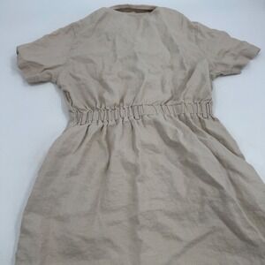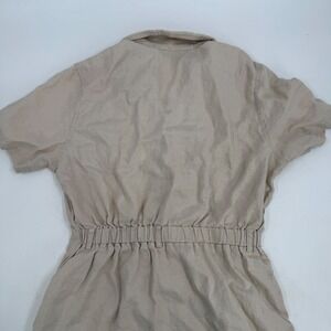 Eddie Bauer Womens Petite Button Up Utility Dress Linen Blend Tan Size Small