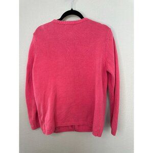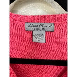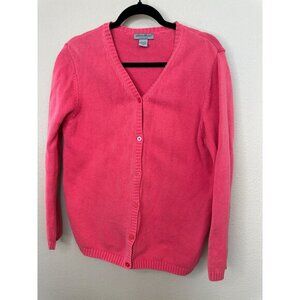 Eddie Bauer Womens Pink Cardigan Medium Button up v-neck 100% cotton long sleeve