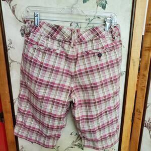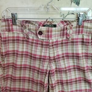 Eddie Bauer Women's Pink Plaid Retro Shorts Size 6 Wide Waist Zip Summer Style