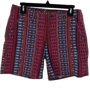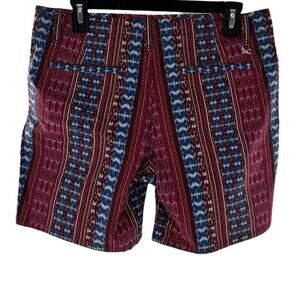 These Eddie Bauer printed shorts are ready for your next adventure! Perfect for hiking, running errands, or just relaxing, these comfortable shorts will be a great addition to your wardrobe. Two slash front pockets. Low profile, back welt pockets. Zip fly with button closure. Pulls on. Cotton / spandex. Machine wash. 0288. 21607158. In preowned condition, has a mark on the inner brand tag.