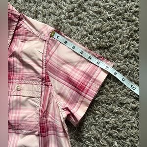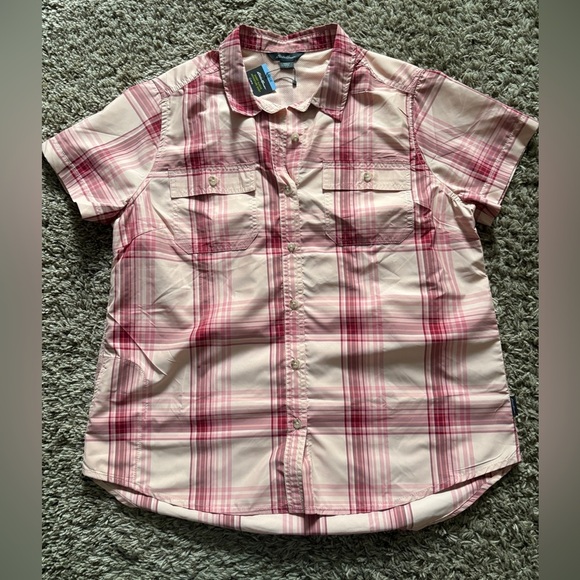 Eddie Bauer Women's Pink and White Plaid Button-Down Shirt