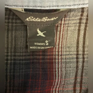 Eddie Bauer Womens Plaid Long Sleeve Woven Button Up shirt Sz Small Cotton Blend