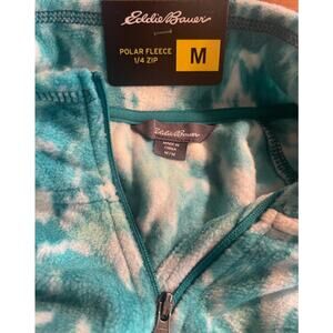 Eddie Bauer Women's Fast Fleece Raglan Sleeve 1/4 Zip Size Medium NWT. Made from 100% recycled polyester. Lightweight fleece. Slightly relaxed fit. Approximate flat measurement pit to pit 20"