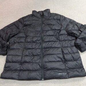 Eddie Bauer Womens Puffer Jacket 3X Black Full Zip Down Filled