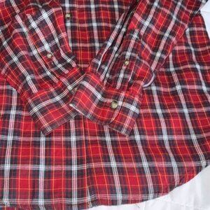 Designed with a timeless red plaid pattern, this Eddie Bauer shirt offers a comfortable fit with soft 100% cotton material, perfect for casual wear.