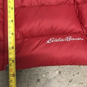 Stay warm and stylish with this Eddie Bauer red puffer down vest. Perfect for layering, it offers exceptional comfort and insulation. Ideal for outdoor adventures or casual wear.
