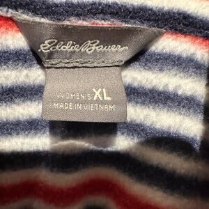 Eddie Bauer Womens Red, White and Blue Fleece Quarter Zip Top XL