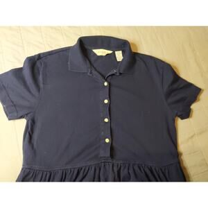 Eddie Bauer Womens S/P Navy Blue Cotton Polo Midi Dress Button Front
