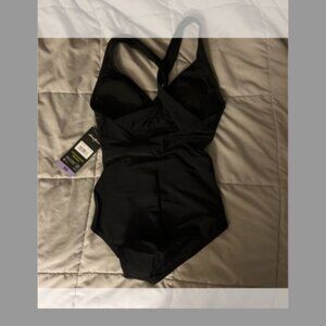 The swimsuit also has ruched sides and shaping accents that give it a unique and flattering look. It comes with a one-piece bottom style and UPF 50, quick-dry, and chlorine-resistant features that make it perfect for any beach or sports activity. This swimsuit is machine washable and is perfect for any woman who wants to look and feel great while having fun in the water.
