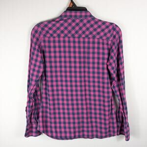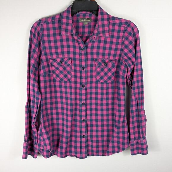 Eddie Bauer Women’s Shirt Small Plaid Long Sleeve Button Front Cotton Pink Blue