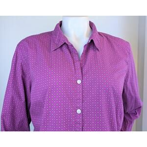 Eddie Bauer Womens Shirt XXL Purple Geometric Button Down 3/4 Sleeve PreppyQ