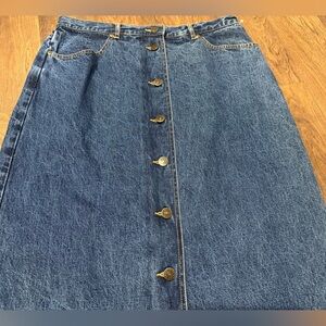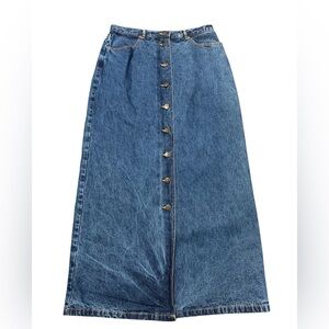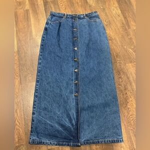 Eddie Bauer Women’s Size 10 Flannel Lined Denim Maxi Skirt Medium Wash Button
