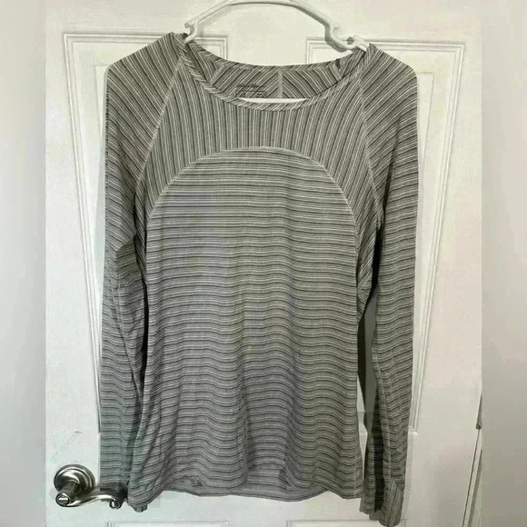 Eddie Bauer Women's Size Small Long Sleeve Shirt Gray/White Stripe. Layering.