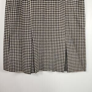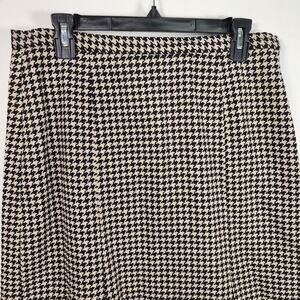 Eddie Bauer Womens Skirt Wool Blend Black Houndstooth Pleated Size 12 Academia