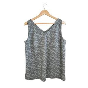 Eddie Bauer Women’s Sleeveless V-Neck Casual Athletic Green Geometric Top Size Medium