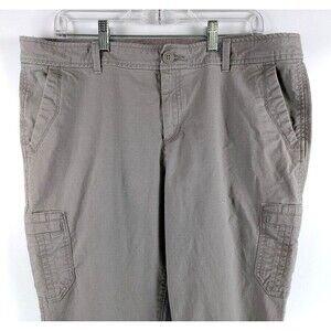 Eddie Bauer Womens Slightly Curvy Cropped Cargo Pants Gray Size 14 Roll Tab Cuff