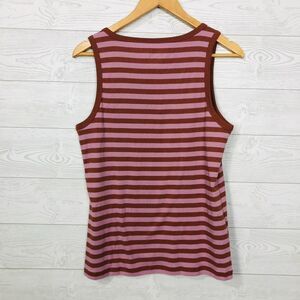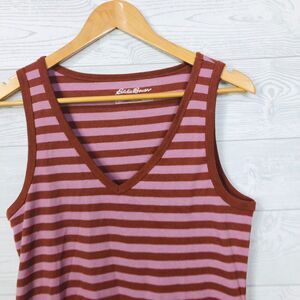 Eddie Bauer Women's Striped V Neck Tank Top Pink Brown Cotton Blend Size Large