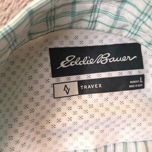 Eddie Bauer Women's Travex Button Up Shirt Large Green Plaid Long Sleeve Outdoor