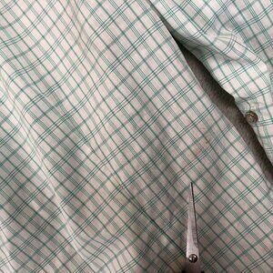 This Eddie Bauer Travex shirt combines functional design with a stylish green plaid pattern. Ideal for layering or as a standalone piece, it features long sleeves, button-up front, and a discreet zip pocket for added utility. Crafted for a comfortable fit, perfect for casual outings or travel-friendly wear.