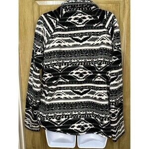 Eddie Bauer Womens Tribal Print Pullover Size XL Black Aztec Ultra Soft Fleece