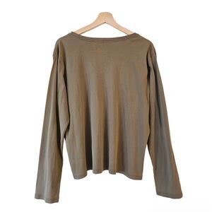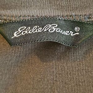Eddie Bauer Women's V Neck Long Sleeve Shirt Pure Cotton Olive Green Size XL