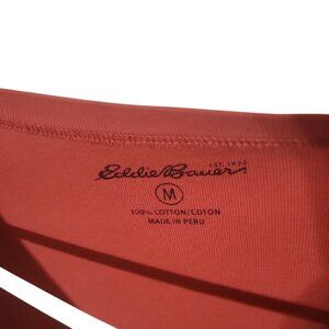 This rust-colored long sleeve top is a blend of comfort and charm. Crafted by Eddie Bauer from 100% cotton, it whispers softness and ease. The V-neck design adds a graceful touch, making it ideal for layering or wearing solo on breezy days.