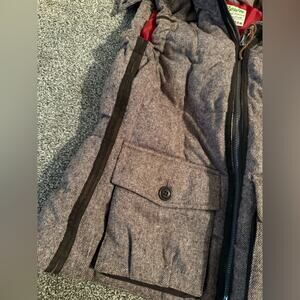 This vest is awesome and I’m so bummed it doesn’t fit me. The craftsmanship is incredible. The outer material is beautiful, the pockets have snaps and gussets, the hood is removable, it is very warm, and it really deserves a new home where it will be loved. Did you see the tabs in the back waist? So rad. Cinch it to your perfect fit. It’s a true small, and the waist is 16” from the shoulder hem. So if you’re not five foot freaking ten, it’ll be perfect. Would ft an XS as well.