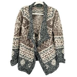 Eddie Bauer Womens Vintage Wool Alpaca Blend Hand Knit Cardigan Sweater in Brown Cream and Gray. Size Small / Medium.