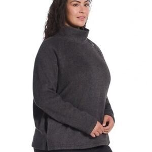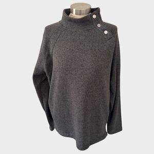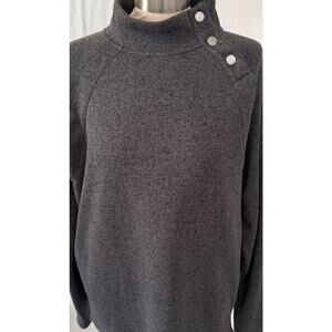 Eddie Bauer Womens XL Mock Neck Funnel Neck Snap Sweater Charcoal Gray