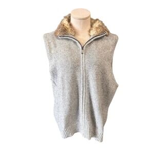 Eddie Bauer Womens XL Sweater Vest Rabbit Fur Collar Gray Sleeveless Knitwear