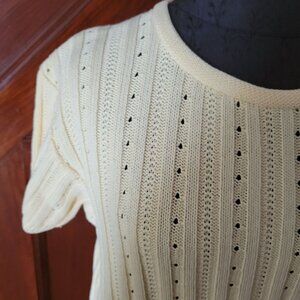 Made from 100% cotton, this ribbed knit sweater offers a soft, breathable fit. Its classic design includes short sleeves and a delicate textured pattern.