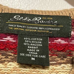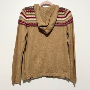 Eddie Bauer Womens Zip Up Fair Isle Hooded Sweater M Angora Tan Nordic Cabincore