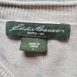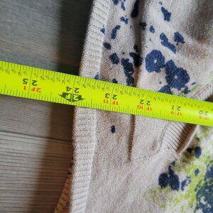 Eddie Bauer Womens Zip-Up Cardigan Sweater L Beige Blue Green Splatter Print