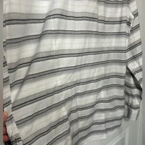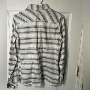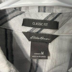 Eddie Bauer Women’s size Medium Classic Fit 100% Cotton Button Up. Black Stripes
