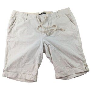 Eddie Bauer Womes White Stripe Bermuda Shorts Drawstring Size 18 Rolled Cuff NWT