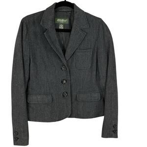 Eddie Bauer Wool Blazer Women's Black White Herringbone Size M