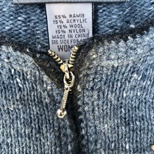 Eddie Bauer Wool Blend 3D Floral Embroidered Zip Up Gray Sweater Cardigan size S
