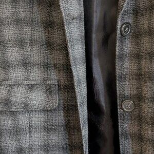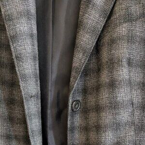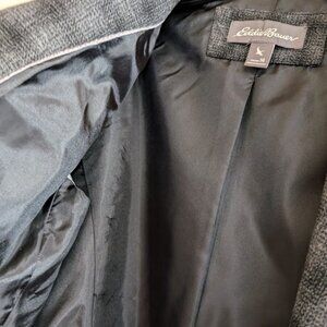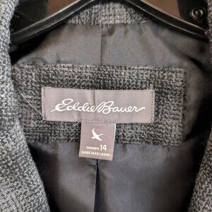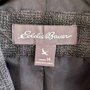 Eddie Bauer women's regular classic wool blazer with square back flap, black and gray plaid check. Item #011 0005 709; size 14. A real wardrobe staple for work, weekends, campus events, walks and more. Great condition, color goes with everything. Comfortable and good looking. I have this jacket in another colorway and wear it all the time. Fantastic blazer!