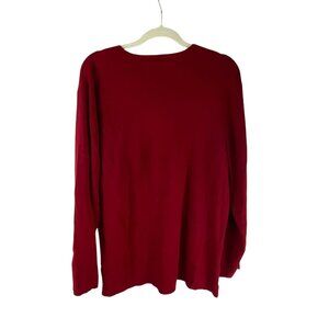 Eddie Bauer Wool Blend V-Neck Pullover Sweater Red L Tall Relaxed Fit Vibrant