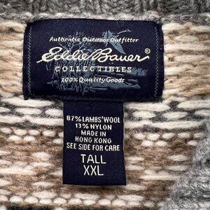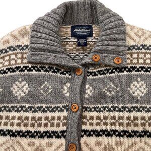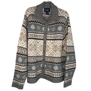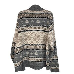 Eddie Bauer Wool Cardigan Sweater Fair Isle Gray & Ivory Size XX-Large Tall