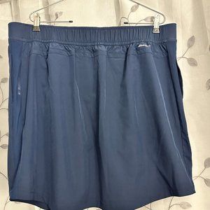 Navy Blue Eddie Bauer Woven Tech Skort Size XXL with UPF 40+, slightly curvy fit with front pockets and elastic waist.