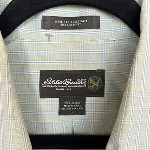 Eddie Bauer Wrinkle Resistant Men's Size L Green Button Down Long Sleeve Shirt