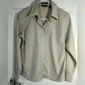 Eddie Bauer Wrinkle Resistant stripped button up Woman’s Blouse. Size Small.