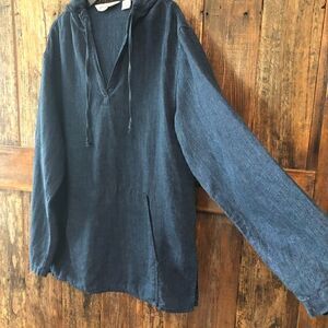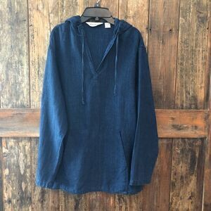 Eddie Bauer XS Blue Denim Kangaroo Pocket Nautical Surfing Beach Pull On Jacket