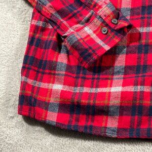 Eddie Bauer XXL Flannel Shirt Red Blue Plaid Long Sleeve Button Down Men's