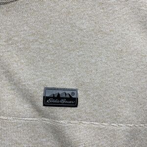 Eddie Bauer XXL Medium Sweatshirt Weight Beige 1/4 Snap Slit Pockets 100% Polyester